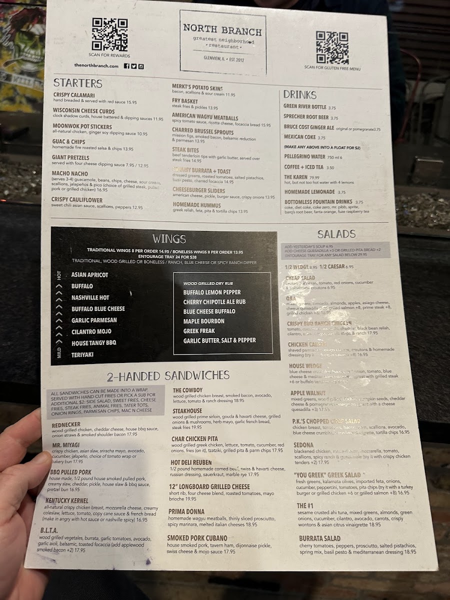 Chicken wings with choice of sauces: Asian Apricot, BBQ, Buffalo, Chimichurri, Garlic Parmesan, Teriyaki, and more. Dipping sauces: Ranch, Blue Cheese, Spicy Ranch.